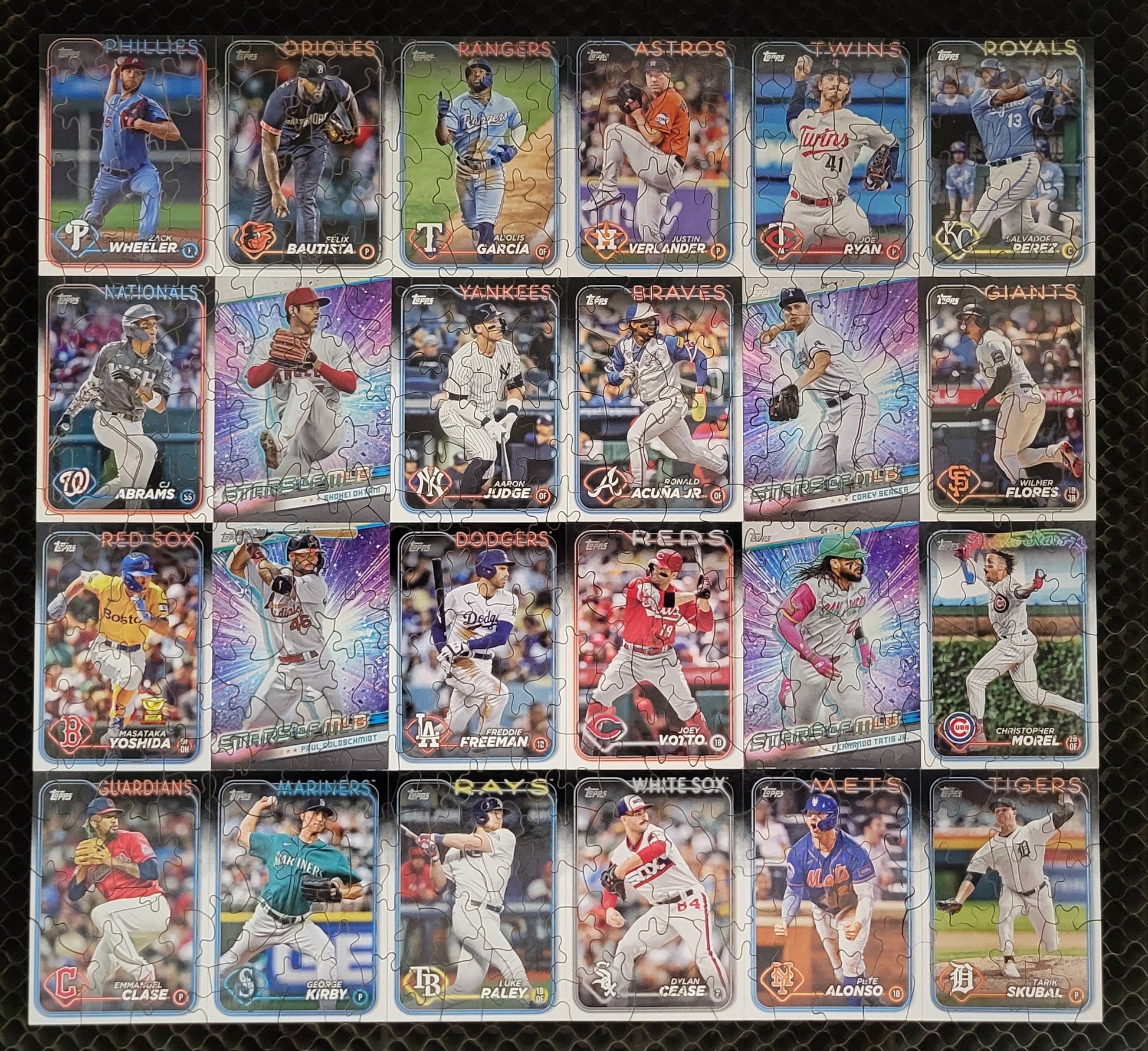 Celebrate the biggest names lighting up Major League Baseball today with the MLB Superstars Now puzzle. Featuring current stars at the top of their game, this handcrafted wooden puzzle brings the excitement of the diamond straight to your table. Perfect for fans who want to piece together the talent dominating right now.