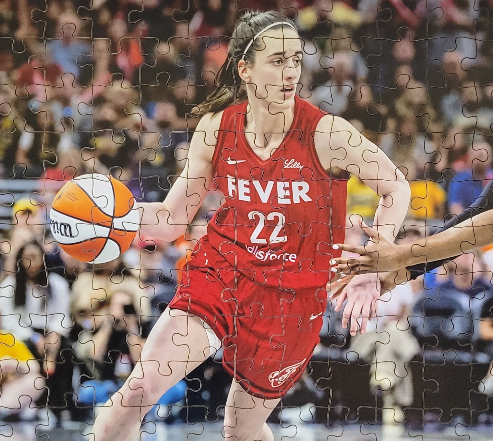 Celebrate a piece of basketball history with this Caitlin Clark licensed photo that has been transformed into a Wooden puzzle! Featuring an iconic shot from her rookie season with the Indiana Fever, this puzzle captures the moment of her first career triple-double. A must-have for any Clark fan, it’s the perfect way to relive the magic of a rising legend, one piece at a time!