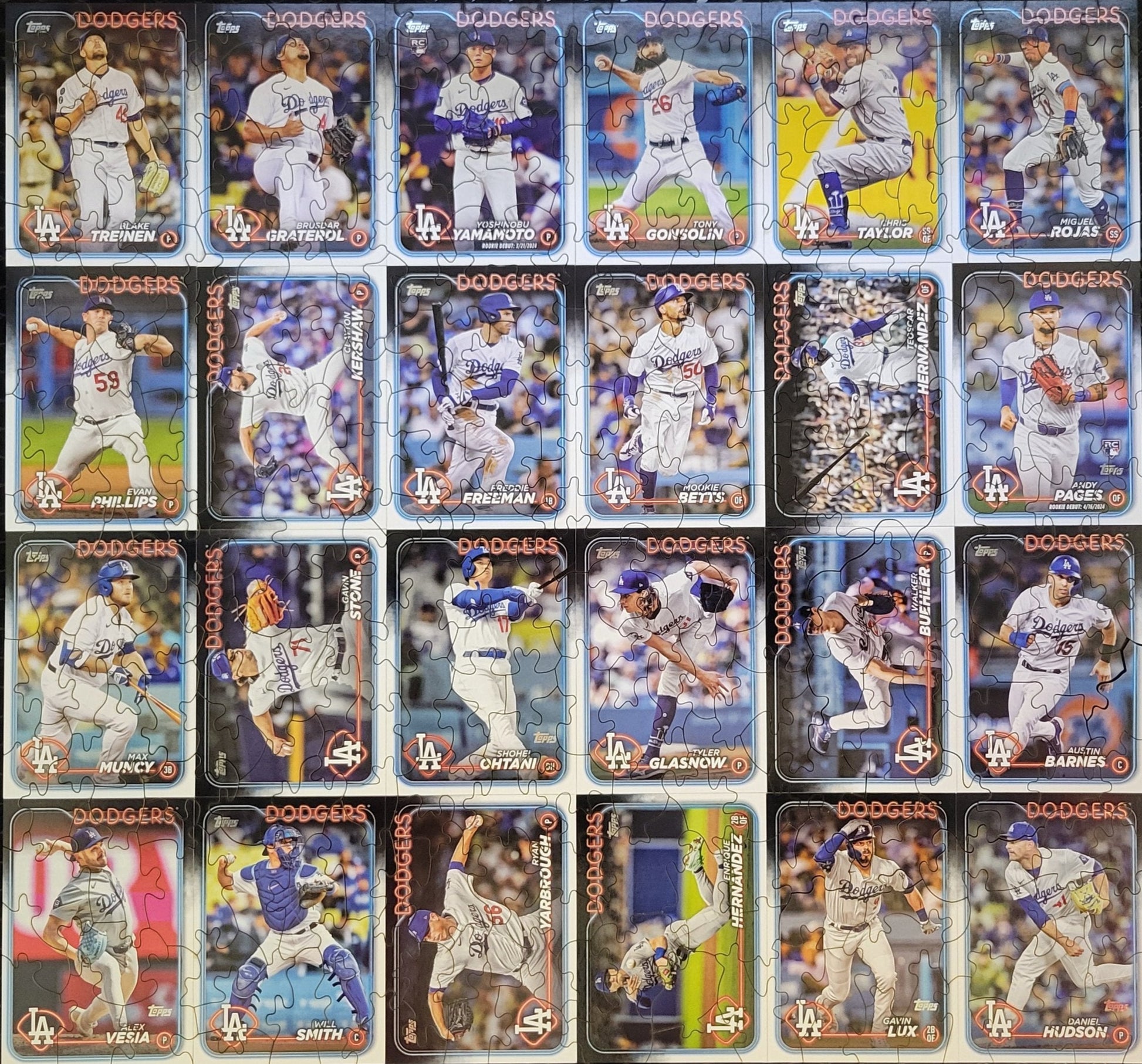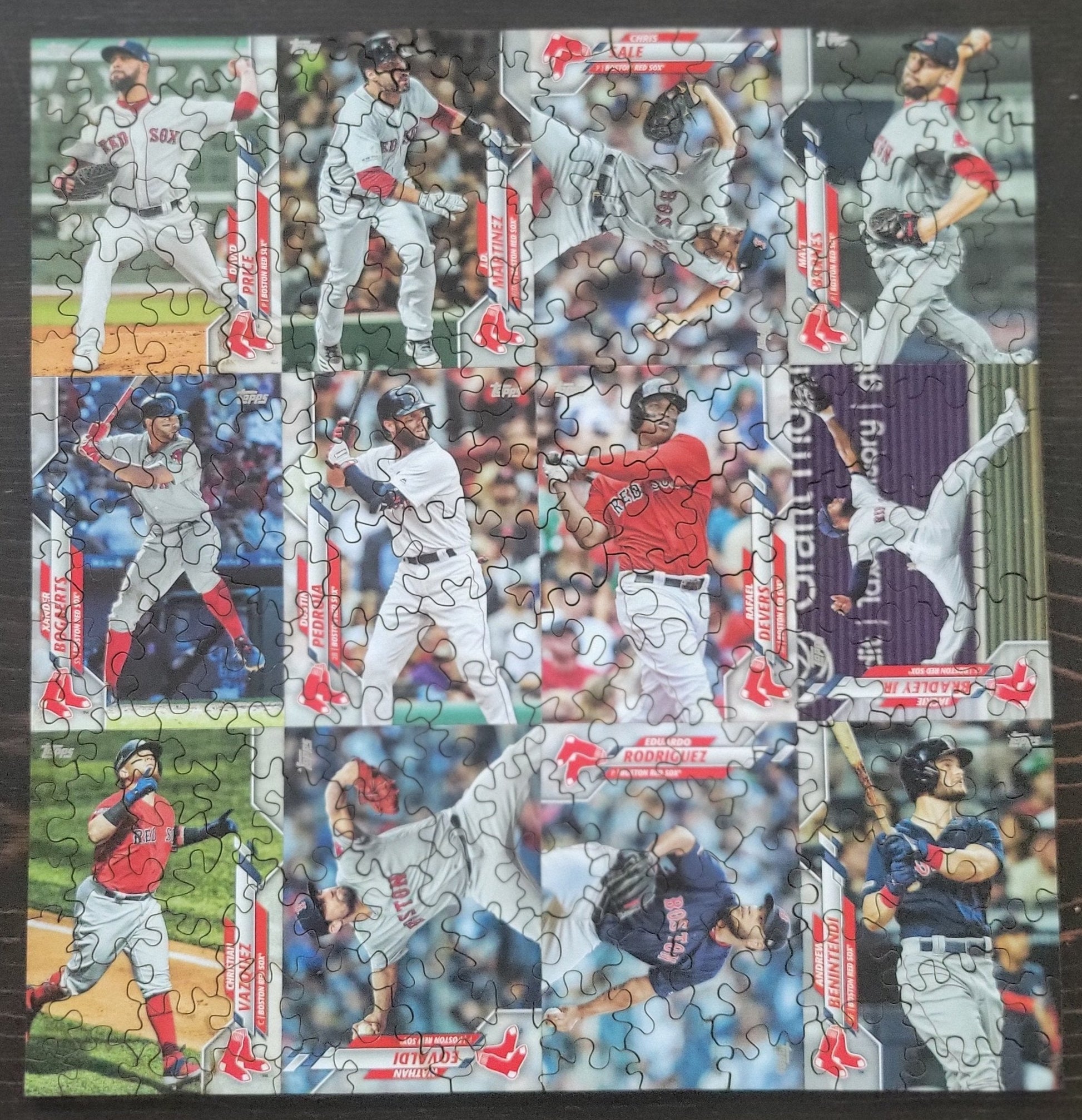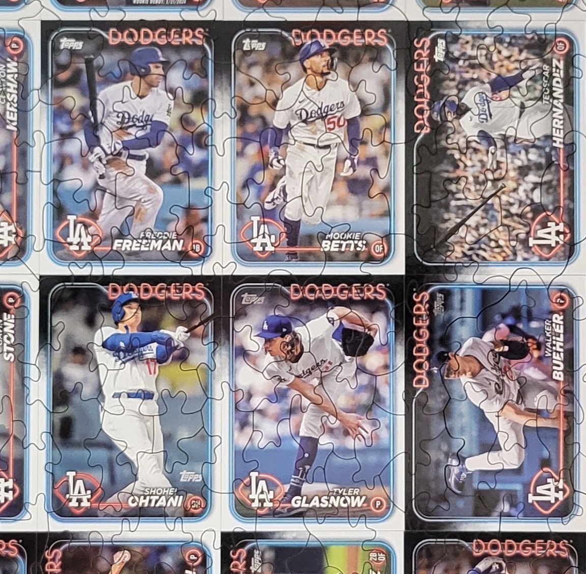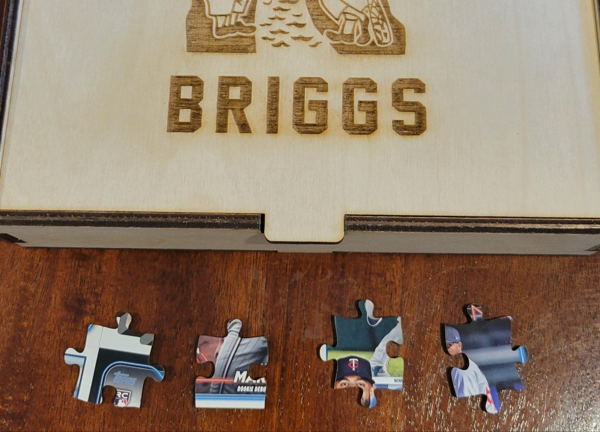 Step up to the plate with our MLB Trading Card Wooden Puzzles, crafted from real trading cards featuring your favorite baseball team! Available in 12 or 24 card options, each puzzle highlights star players from the 2020s, hand-selected to include top names from your chosen team. These puzzles come with irregular shaped pieces to add an extra challenge!