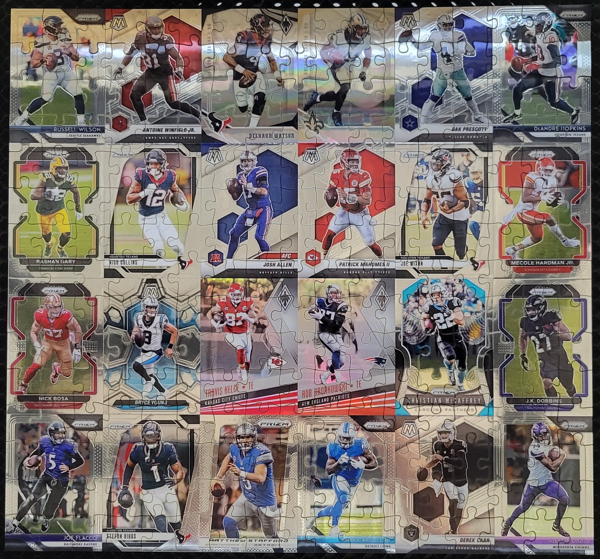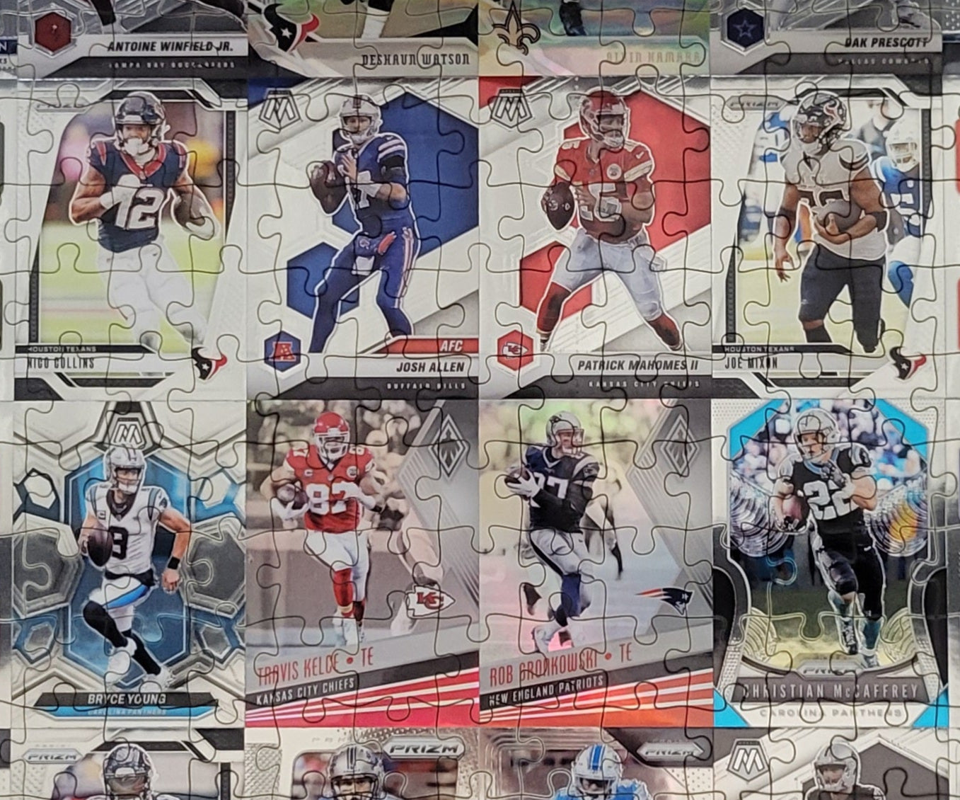 Check out this incredible NFL Puzzle with current All-Pro Players! We’ve taken 24 cards from Panini Chromium sets and turned them into a one-of-a-kind puzzle that’s sure to fire up any football fan. Whether you’re piecing together your favorite MVPs or testing your knowledge of the league’s biggest names, this puzzle is a must-have for any gridiron enthusiast!